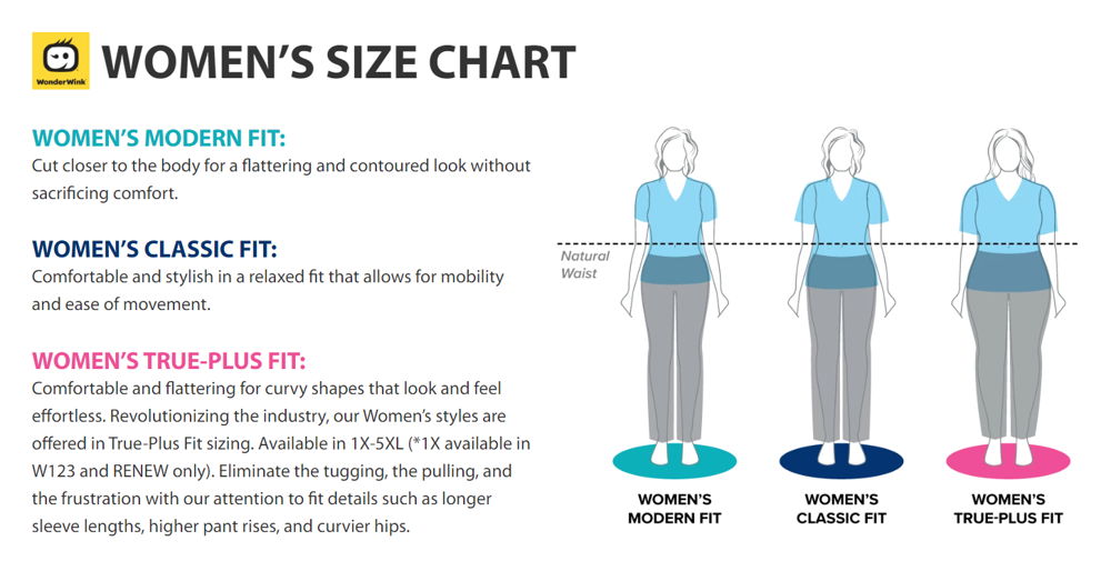 Women are curvy! It’s just a fact, but curves don’t mean every body type shouldn’t have comfortable and flattering scrubs. Wonderwink True-Plus Fit offers longer sleeve lengths, higher pant rises, and a curvier fit through the hips so every pair of scrubs look and feel effortless.