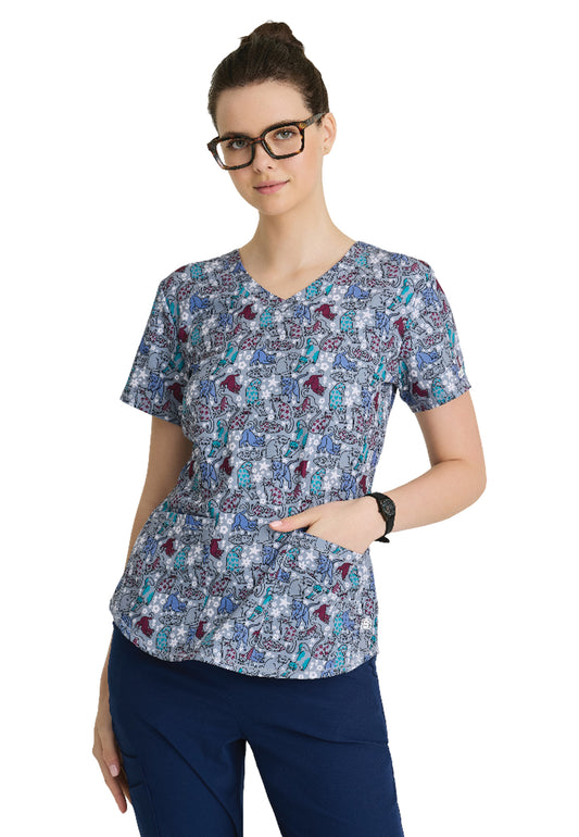 Women's Two-Pocket V-Neck Print Top