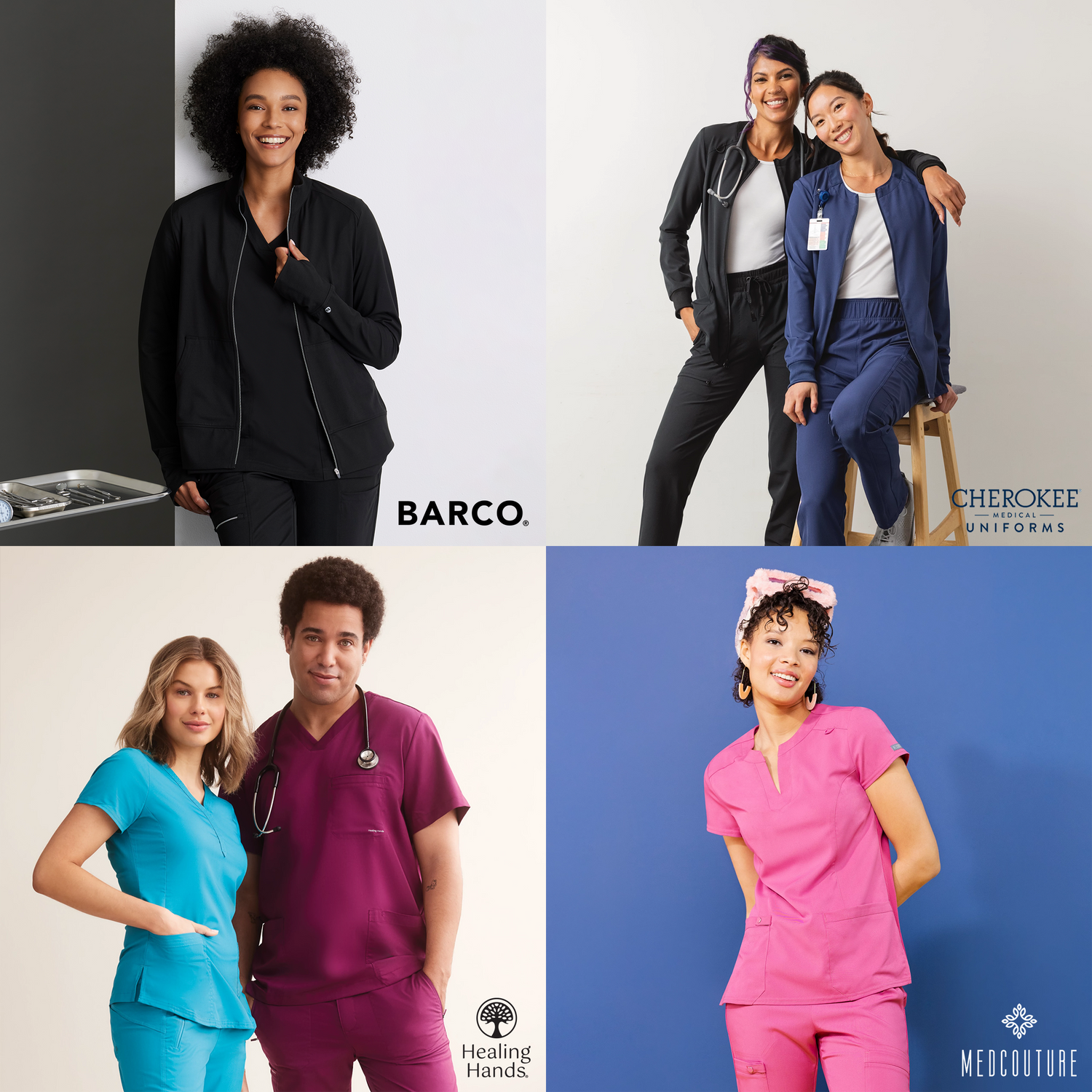 Our brands include: Barco, Grey's Anatomy, Med Couture, Cherokee, Dickies, Wink, Healing Hands, LifeThreads, Koi, Skechers, Landau, and more!