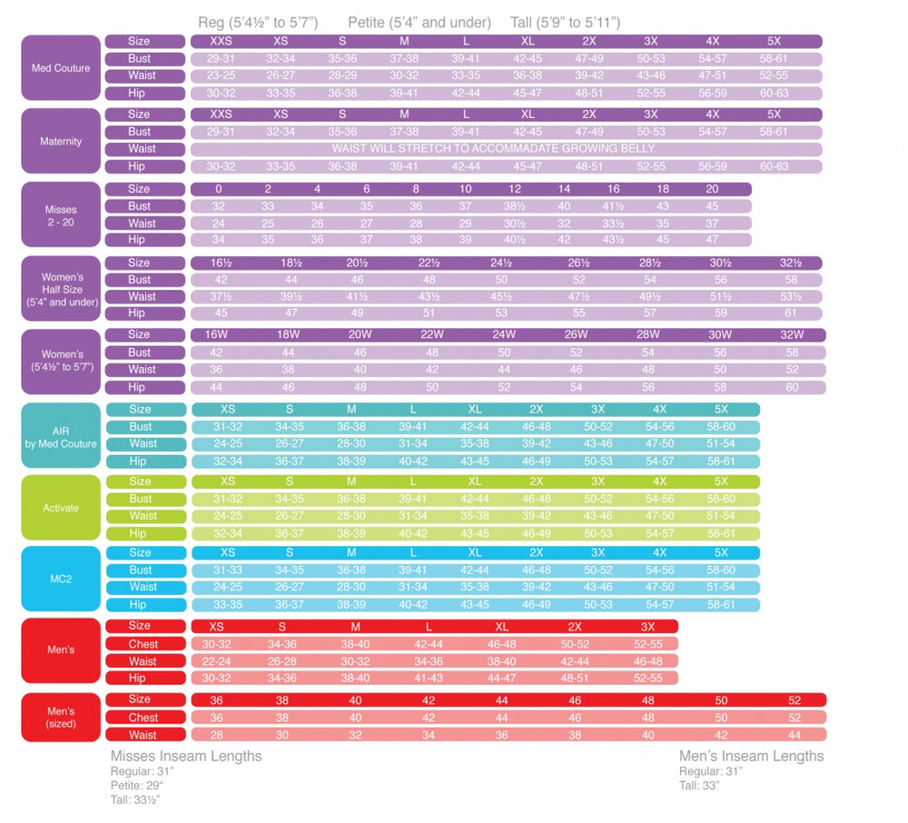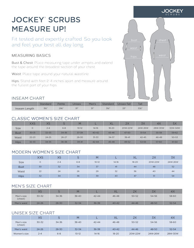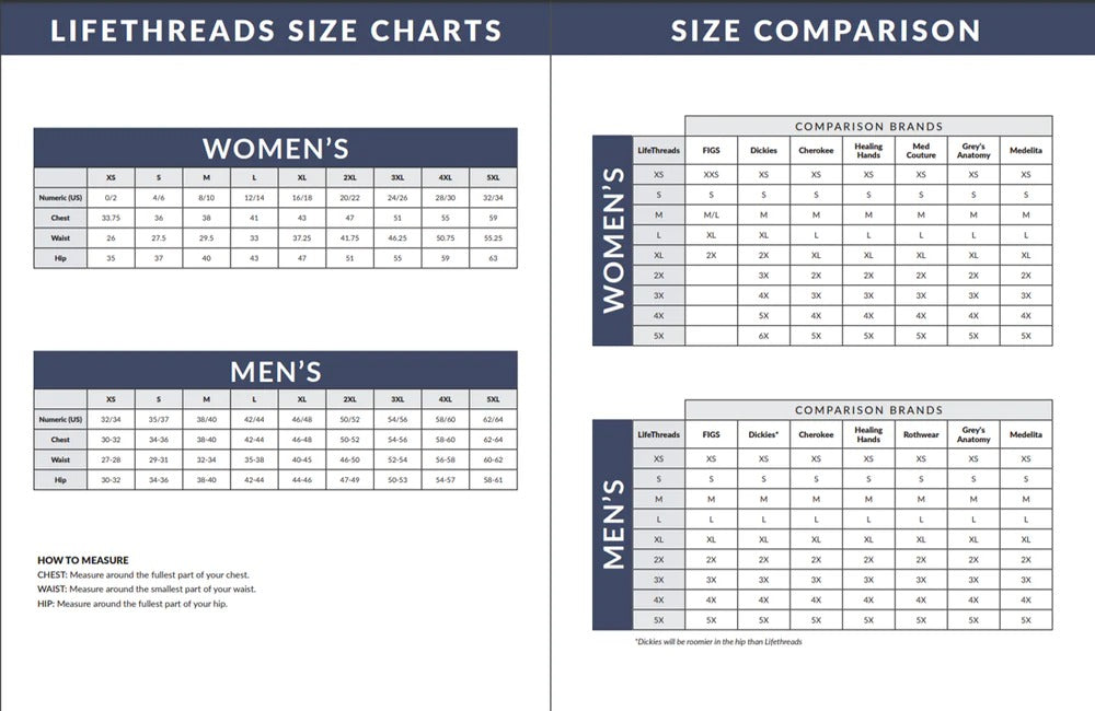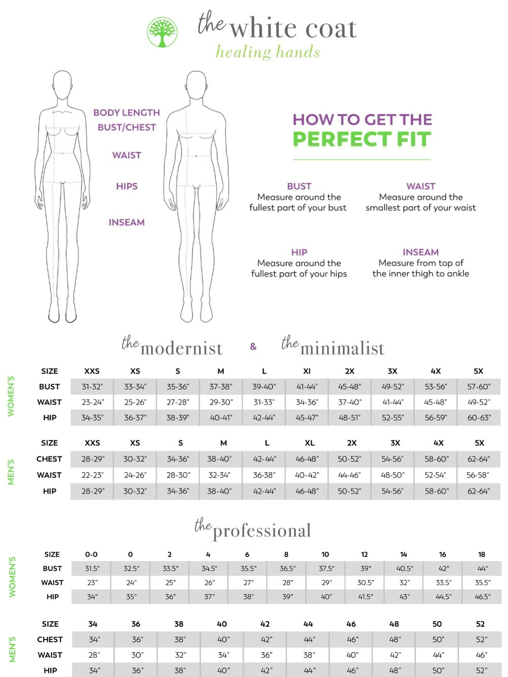 Similar to typical apparel, scrubs have unique fits based on the brand and the apparel collection. To help you determine which fit is best for you, please take a look at the fit types by brand to determine which is best for you, or reference the size charts below if you know your size and measurements already.
