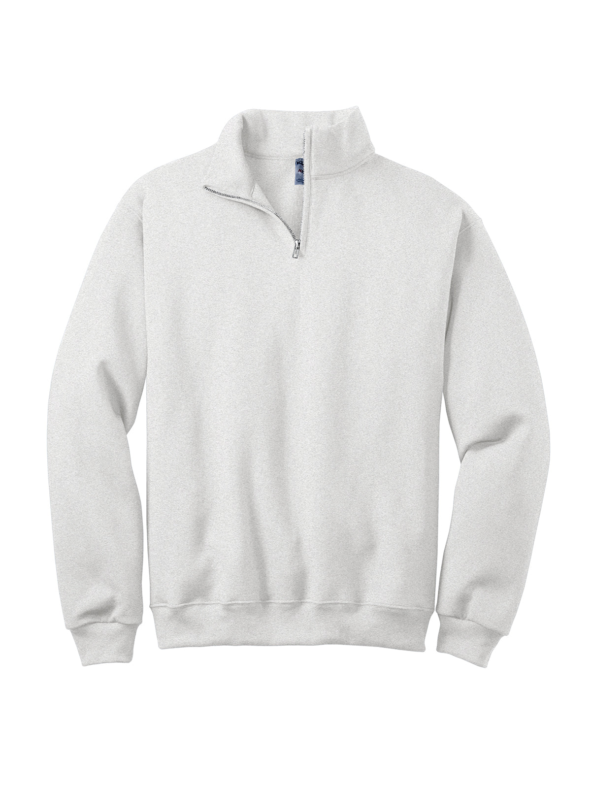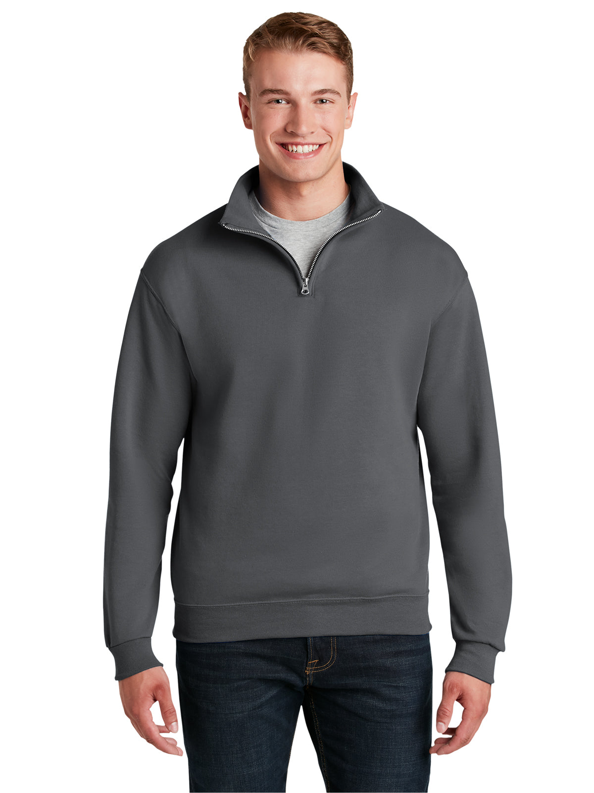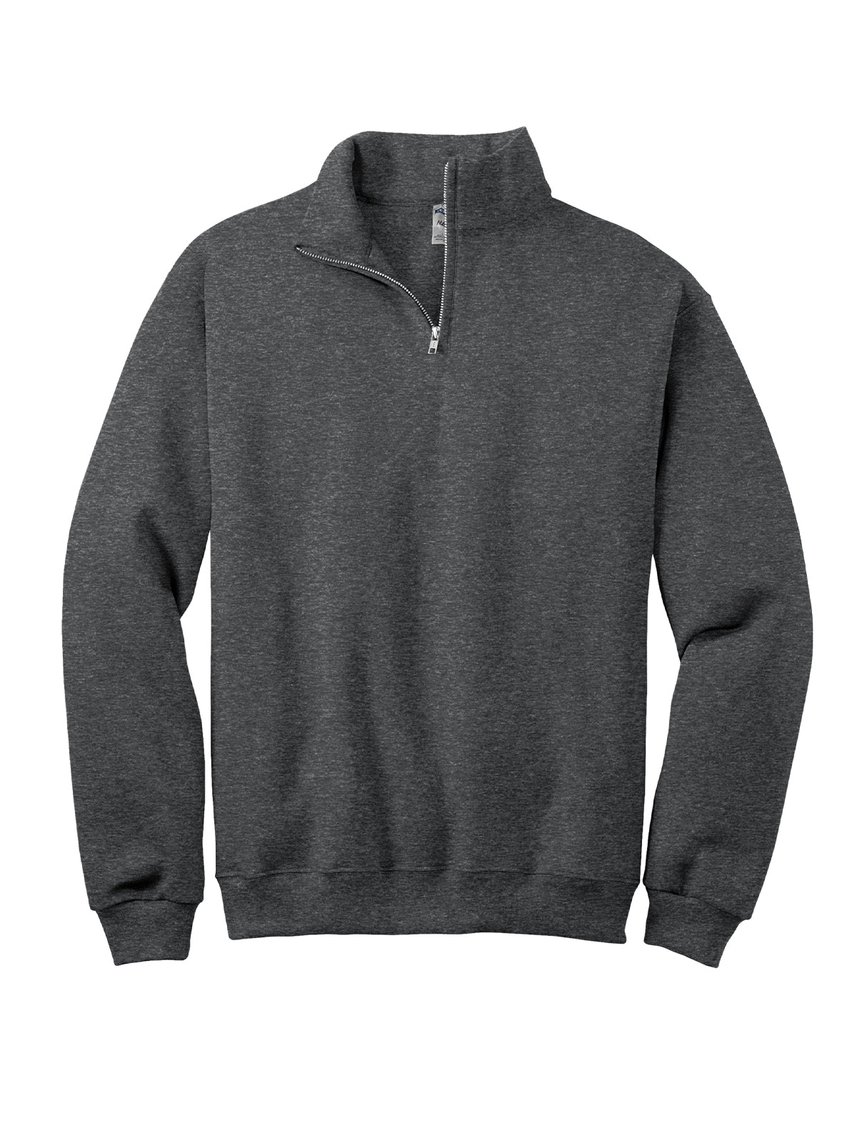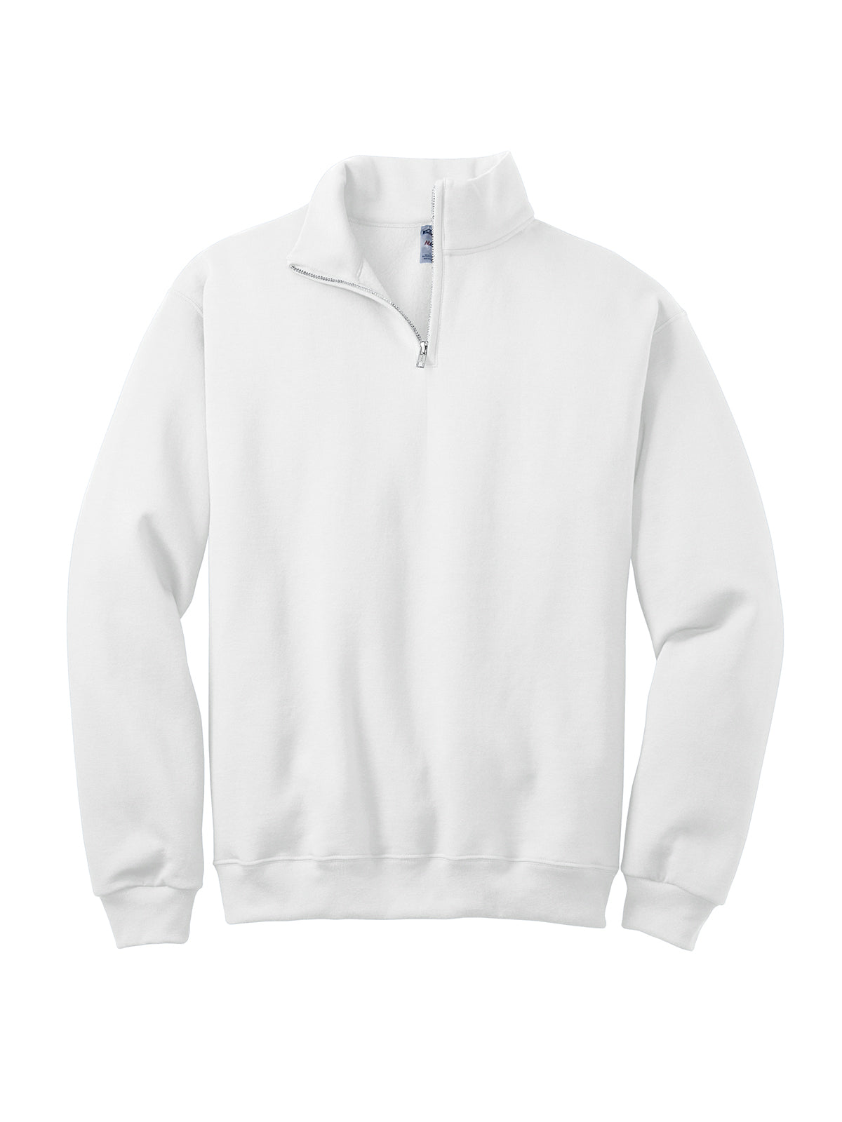 8-ounce 50/50 cotton/poly NuBlend; pill-resistant fleeceHigh-stitch density for a smooth-printing canvasStylish zip-through cadet collarCovered aluminum zipper for maximum print areaRib knit cuffs and waistbandDouble-needle coverstitching on armholes and waistband