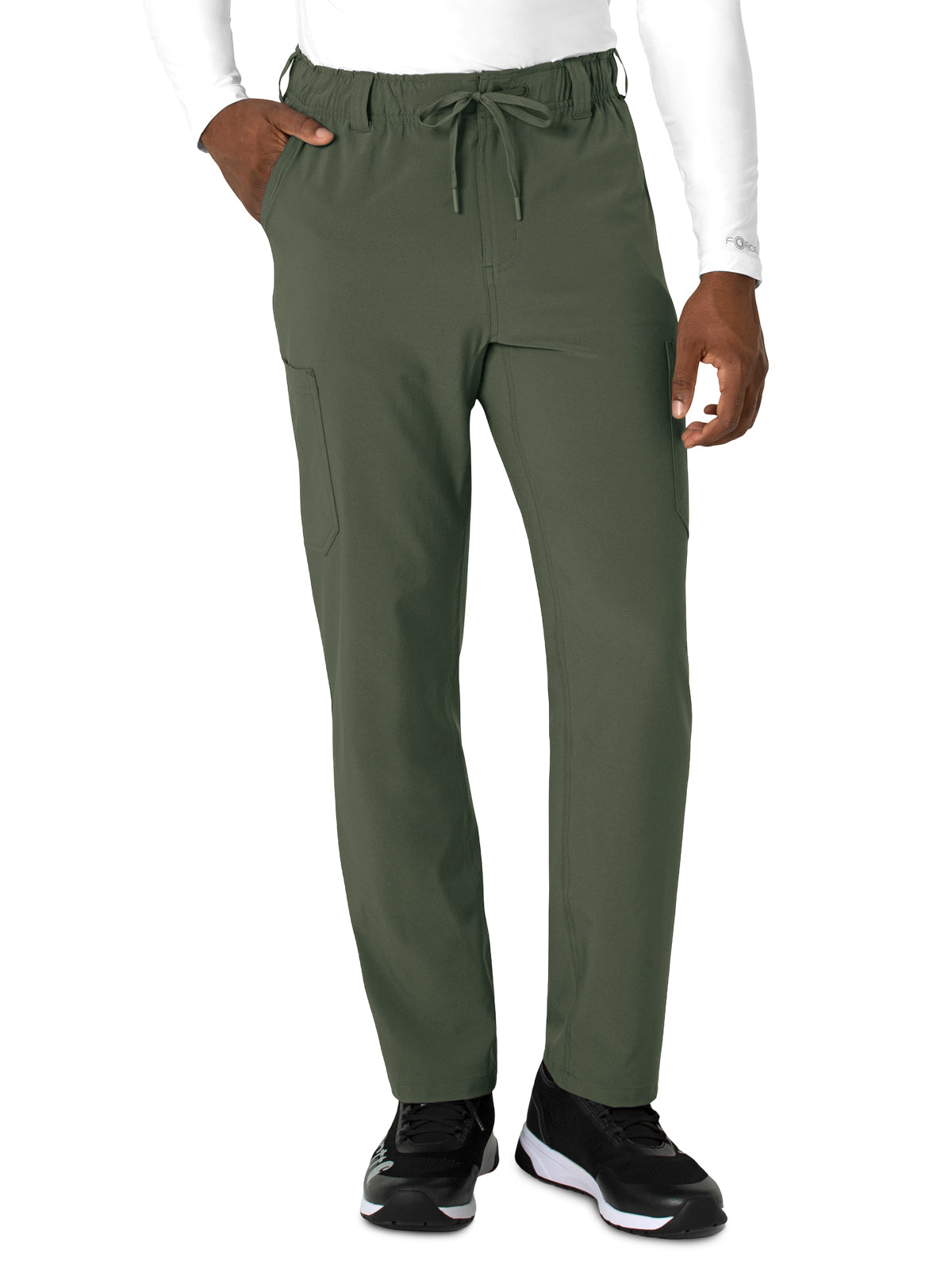 Show up to each shift in a fresh and modern look that delivers on utility with practical design. These men's scrub pants have a straight-leg fit that keeps things simple and streamlined. They're made with a soft and stretchy material that has micro ripstop built into it, making the most of durability for long-lasting wear. No worries when it comes to the essentials you need to keep your shift moving smoothly — these scrub pants are designed with pockets that hold it all. Two deep front pockets and two back pockets make it easy to access items and tools, while one hidden zip pocket at the right keeps small valuables out of sight. On the right is a cargo pocket with a pen slot plus utility loops that give you a convenient spot to secure things like your glasses or badge. On the left is another cargo pocket built with an interior mesh pocket for your phone. These scrub pants are part of our Force Cross-Flex collection that wicks sweat and dries fast, making them perfect for any shift.
