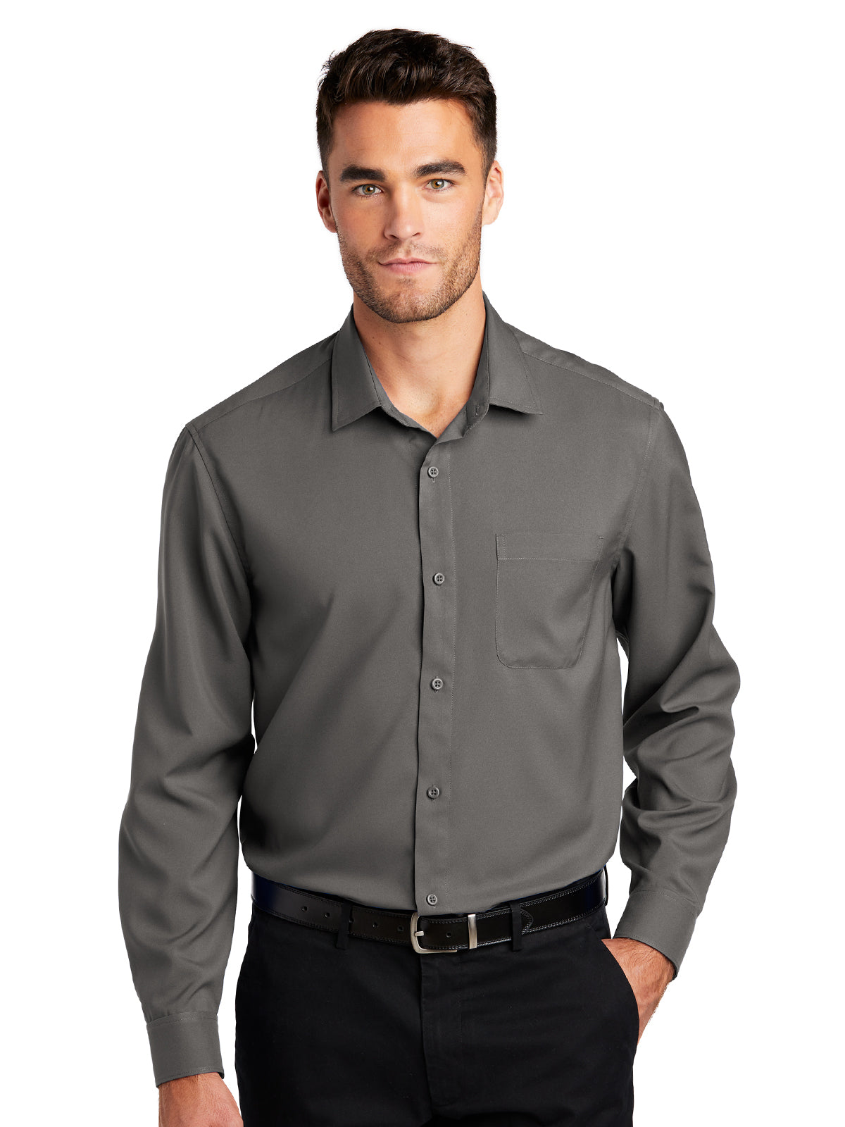 Be ready to perform your very best with these shirts designed with stain release odor-fighting and moisture-wicking technologies. 3.3-ounce 100% polyester Stain release Odor-fighting Moisture-wicking Wrinkle-resistant Open collar French placket Dyed-to-match buttons Left chest pocket Rounded adjustable cuffs