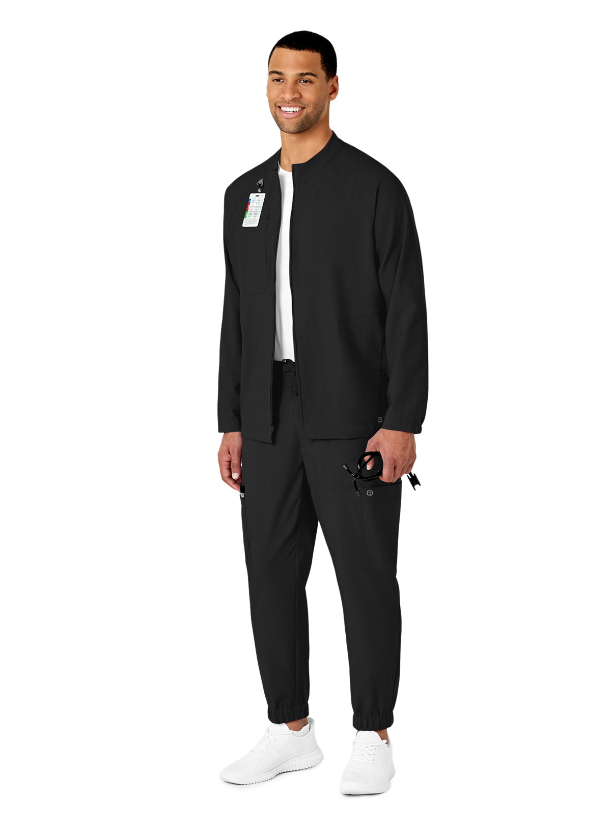 Enjoy the moisture-wicking and 4-way stretch properties of the W123 by WonderWink Men's Zip Front Solid Scrub Jacket. This minimalist design maximizes your comfort, utility and style.