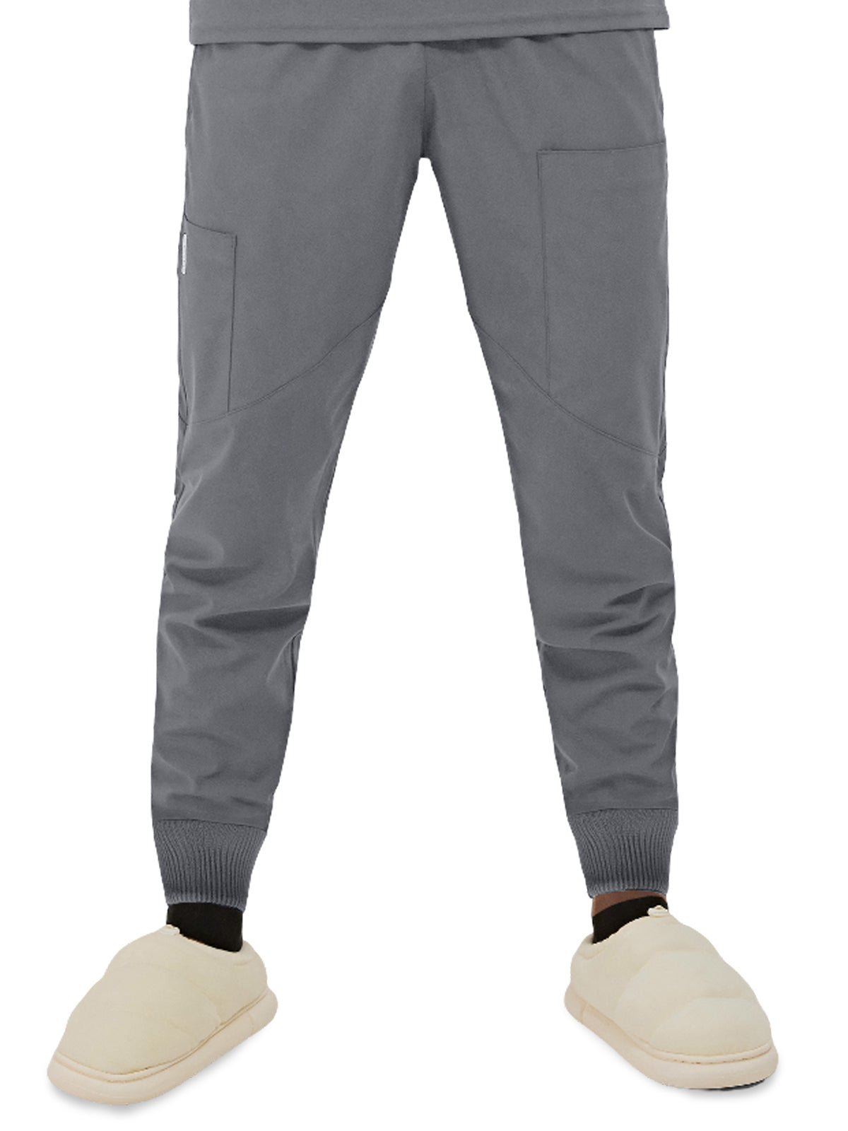 - Jogger style pant with a total of seven pockets: two cargo, one cell phone, two front slant, and two back pockets