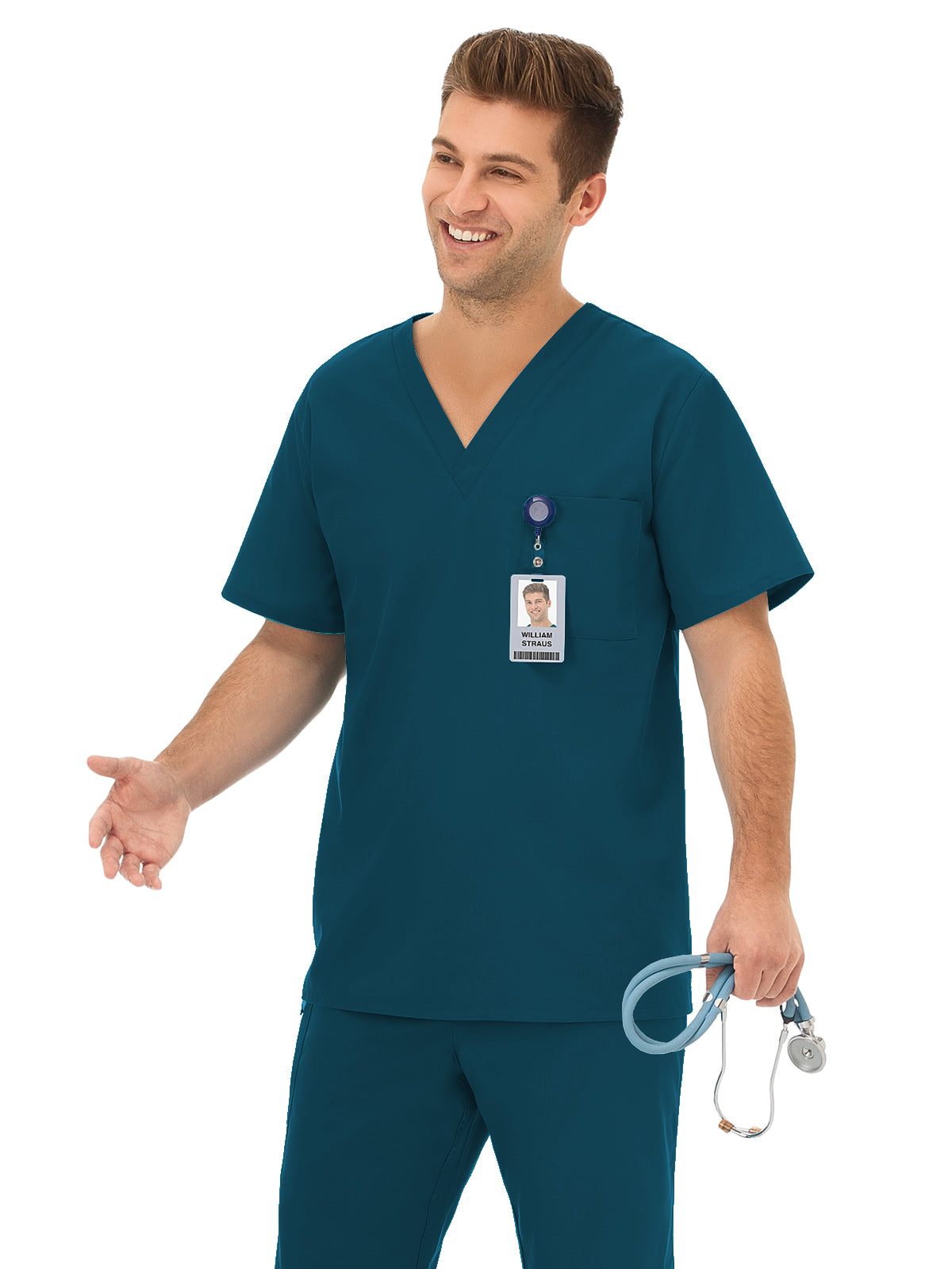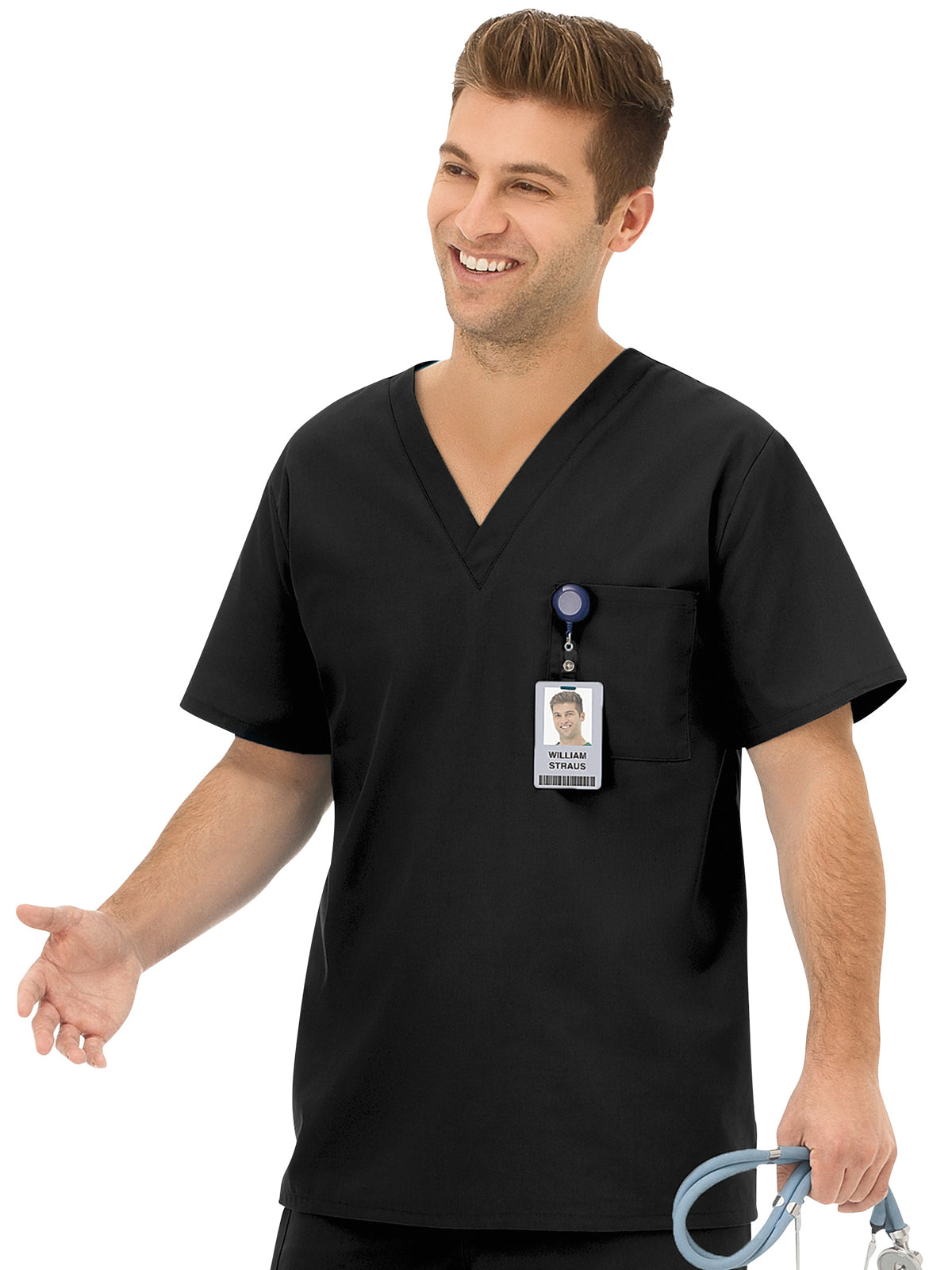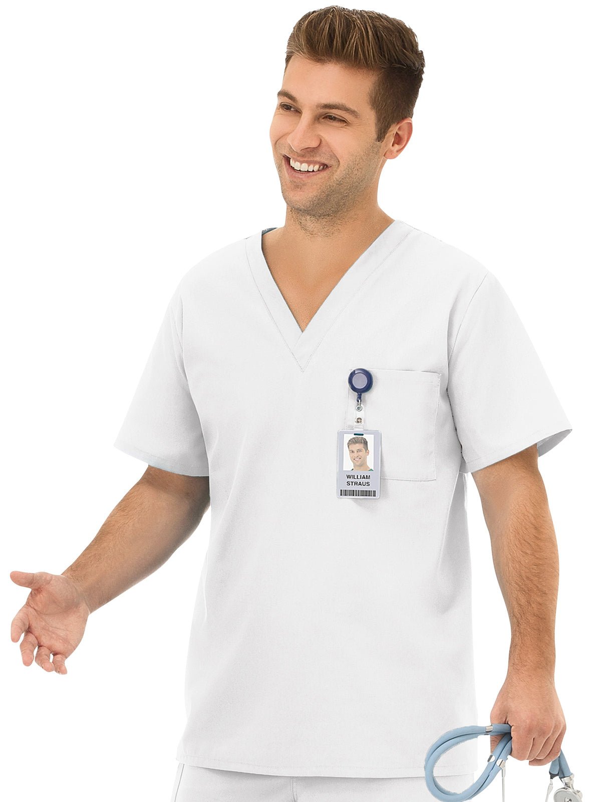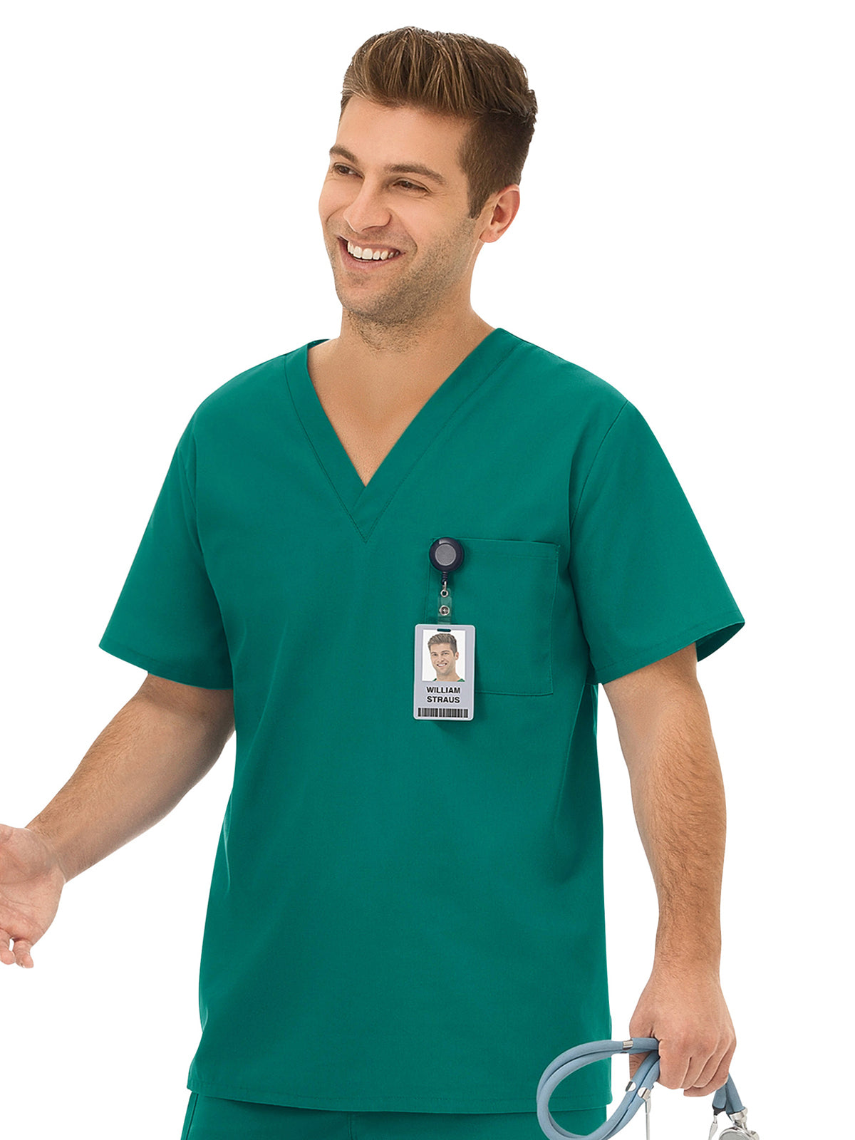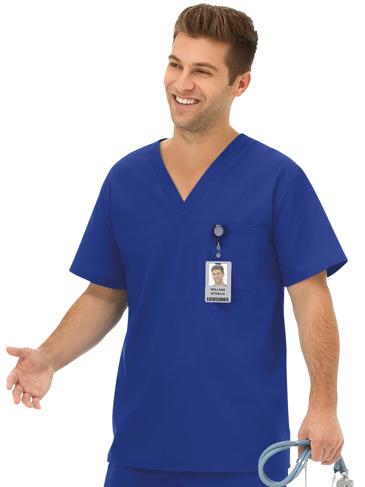 This scrub top is designed to keep you comfortable and looking professional during long shifts. This scrub top features a flattering v-neckline, set-in sleeves, and a convenient pocket with a pen divider. Made from cotton poplin, the fabric is strong, crisp, and silky smooth. The soil-release feature helps protect against liquids and powders, keeping you fresh throughout your workday. With a 29" center back length, this top provides ample coverage and a polished appearance.