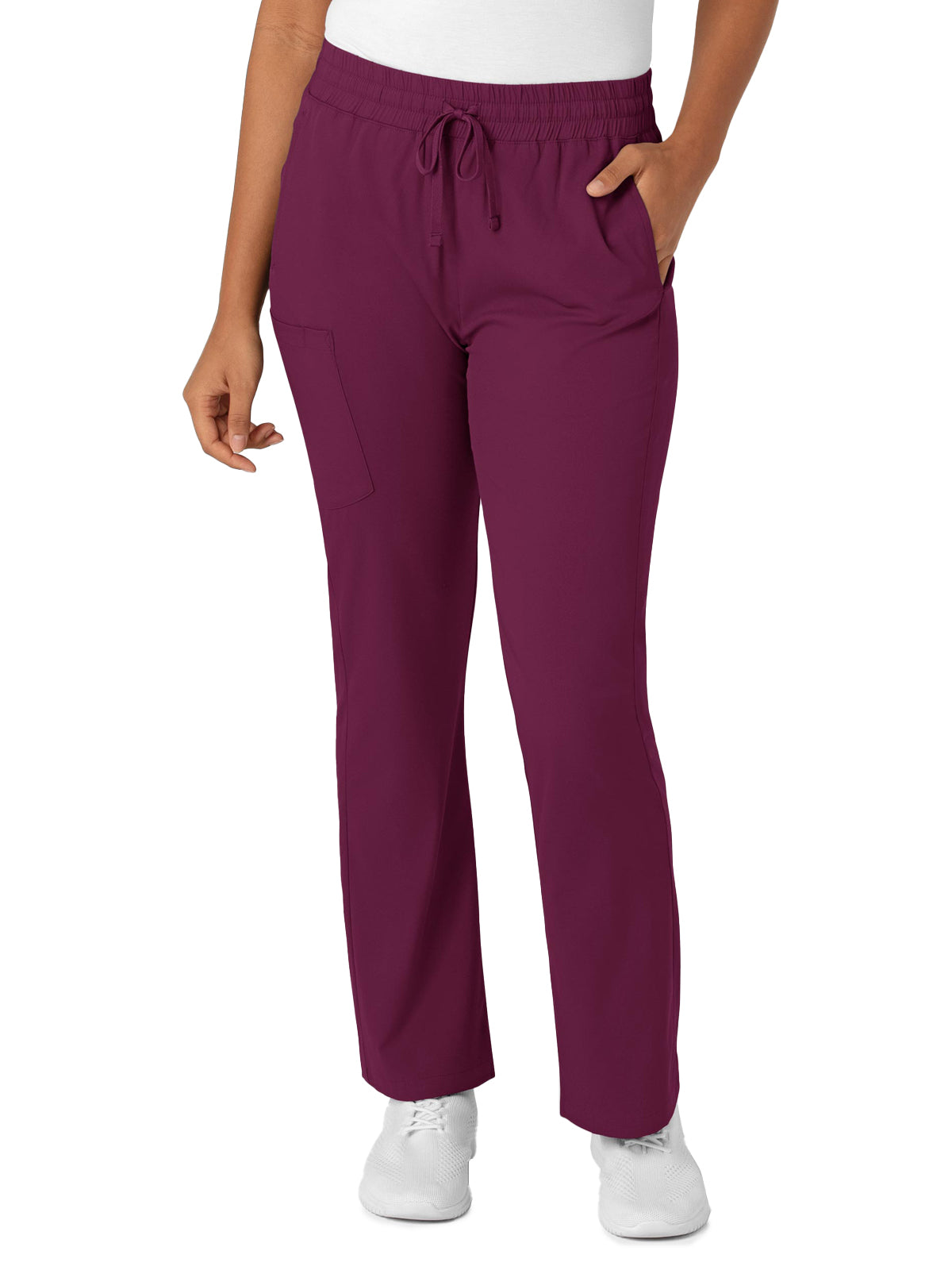 Our Women's Bootcut Scrub Pant offers a harmonious fusion of style, utility, and eco-consciousness. With a timeless bootcut silhouette, these pants feature a mid-rise waist adorned with a wide waistband and a drawstring for a tailored fit. Equipped with six pockets, these pants ensure convenient storage for all your essentials. The full elastic waistband guarantees day-long comfort, while internal vent slits enhance breathability and flexibility. Crafted from a sustainable fabric blend, these pants not only offer comfort but also contribute to environmental sustainability. With easy-care instructions of machine wash cold and gentle tumble dry, these pants are a stylish, practical, and eco-friendly addition to your workwear collection.
