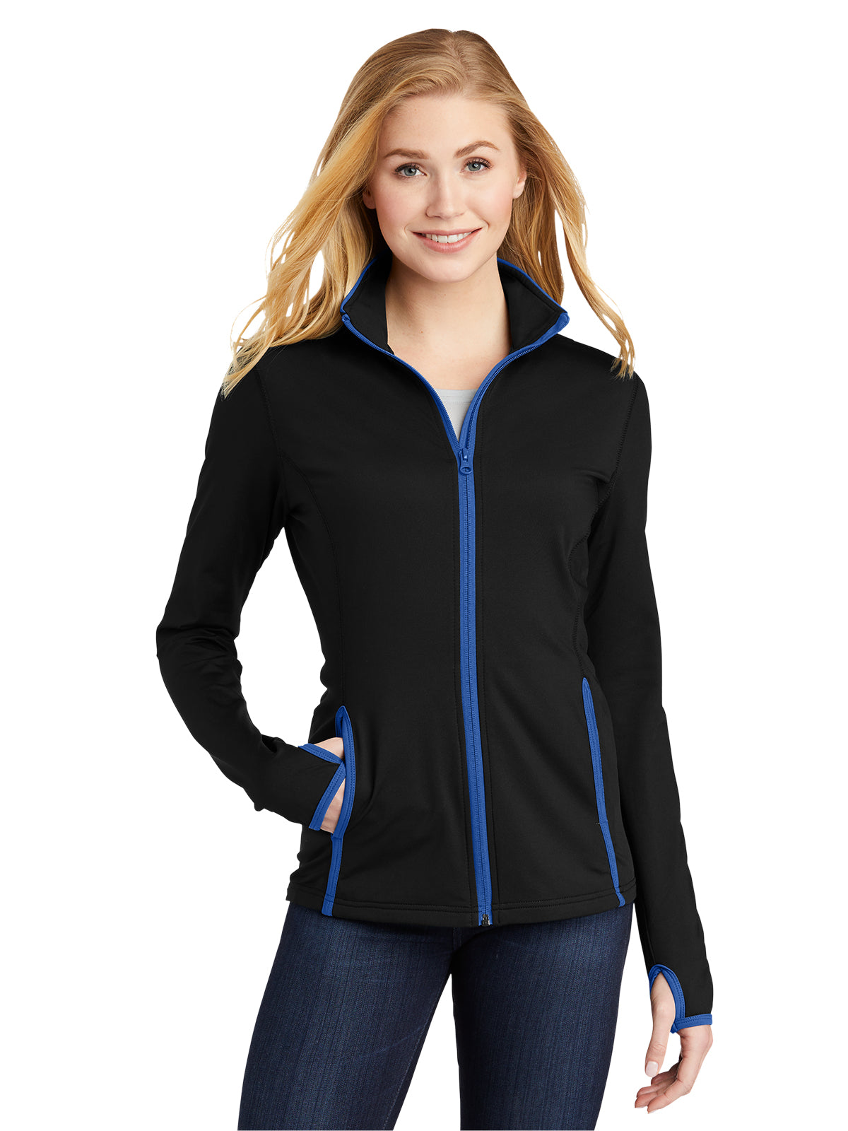 Stay comfortable and stylish on the move with this moisture-wicking, soft-brushed jacket. Its flexible fabric ensures ease of movement, while the contrast color details add a sporty touch. The cadet collar with contrast piping creates a classic look, and the tag-free label ensures itch-free comfort. The contrast reverse coil zipper adds a modern detail, and the contrast cuff binding provides a secure fit. Convenient thumbholes keep your hands warm during chilly days.