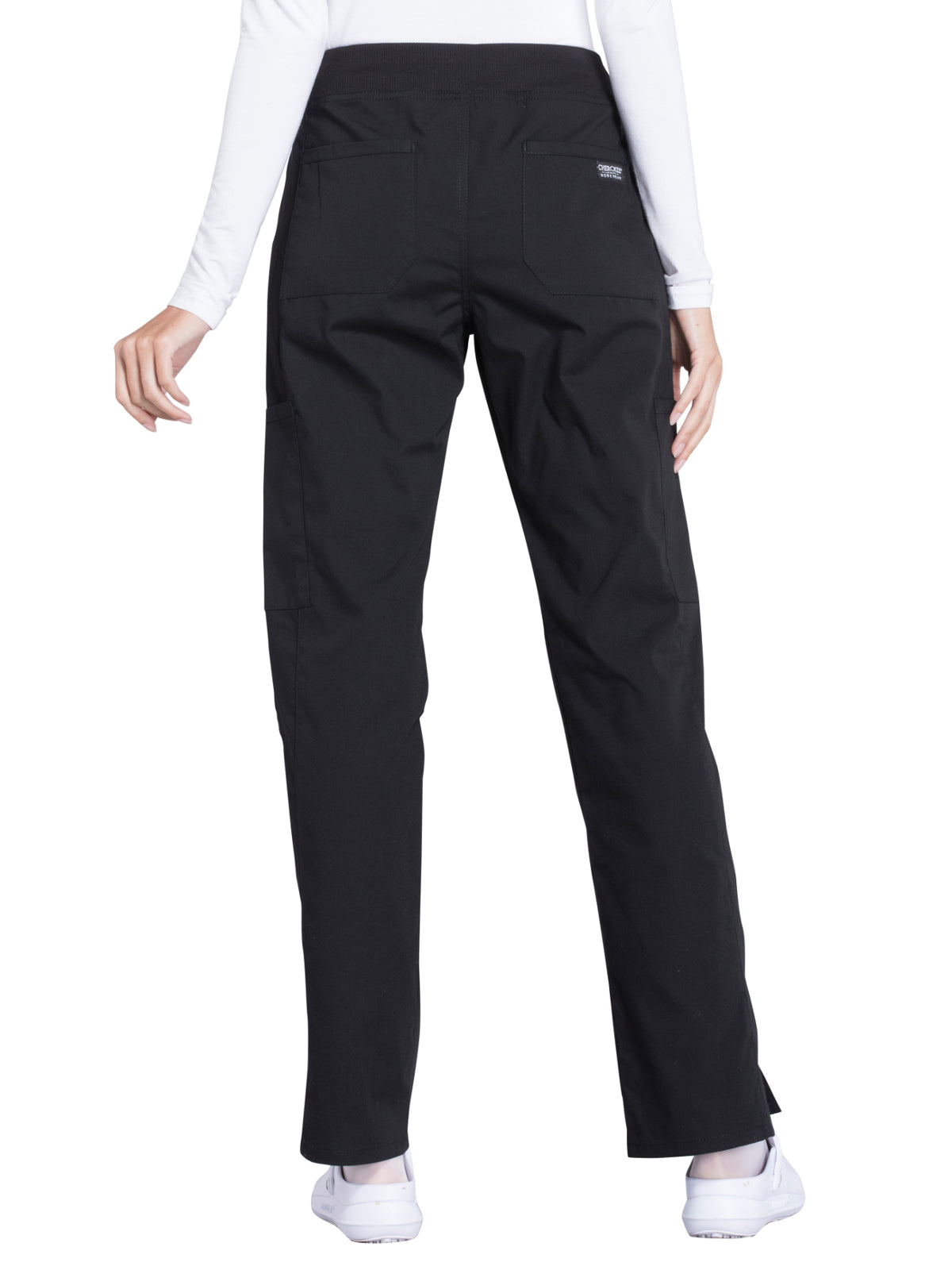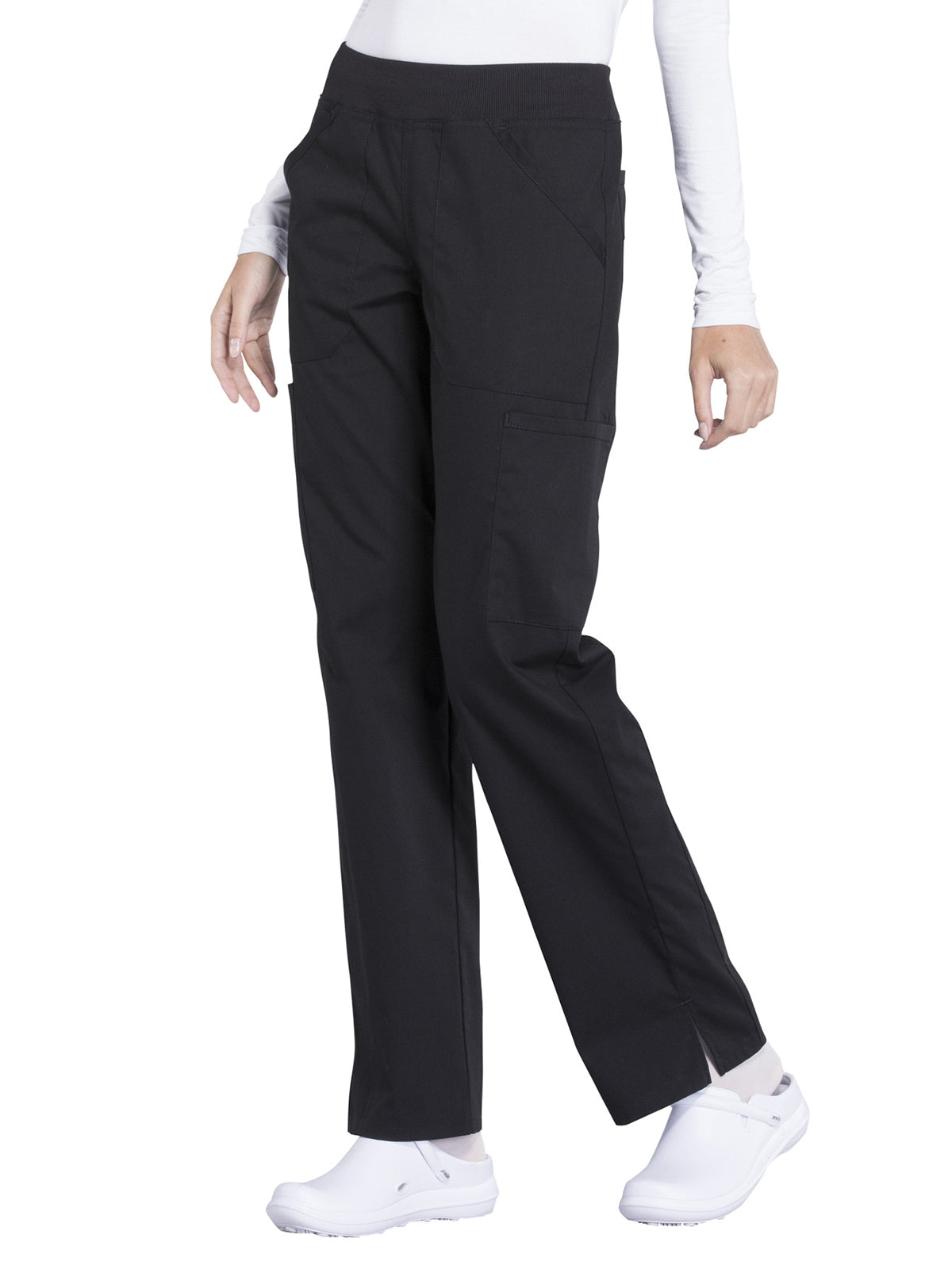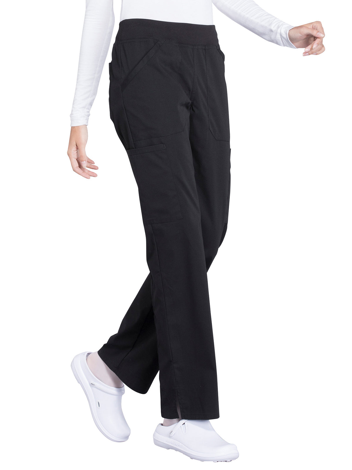 A modern classic fit, mid rise, straight leg pant includes a comfort-fit, rib-knit waistband reinforced with inside elastic for extra support, front patch pockets, two cargo pockets, two back pockets, and side vents.