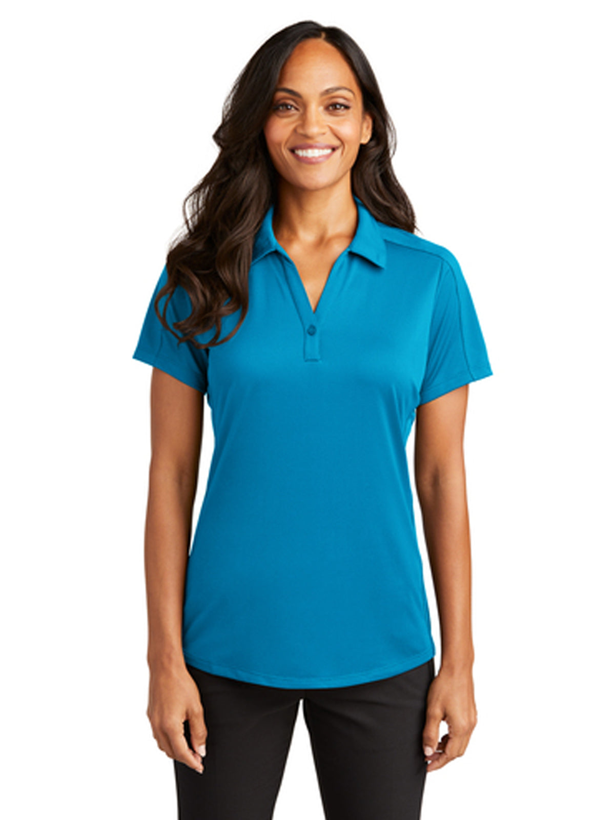 A subtle diamond jacquard texture gives this moisture-wicking polo a finer, elevated appearance. Sleek self-fabric shoulder and side panel piecing make it perfect in or out of the office.