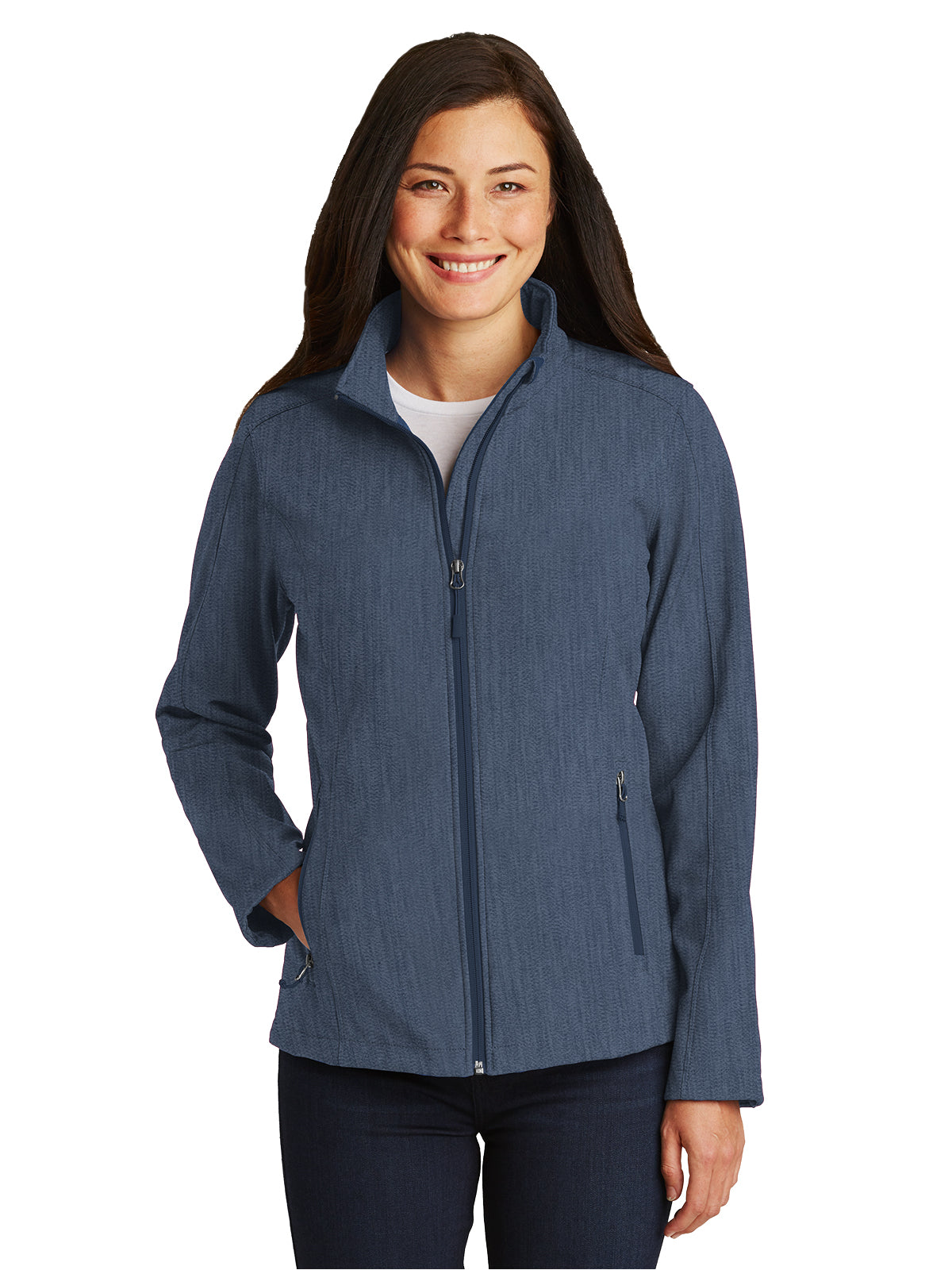 A reliable soft shell at a real value. This go-to basic sheds wind and rain and is a perfect choice for corporate or team uniforming. 100% polyester woven shell bonded to a water-resistant film insert and a 100% polyester microfleece lining 92/8 poly/spandex woven shell bonded to a water-resistant film insert and a 100% polyester microfleece lining (Heathers) 1000MM fabric waterproof rating 1000G/M2 fabric breathability rating Zip-through cadet collar with chin guard Reverse coil zippers Front zippered pockets Open cuffs and hem