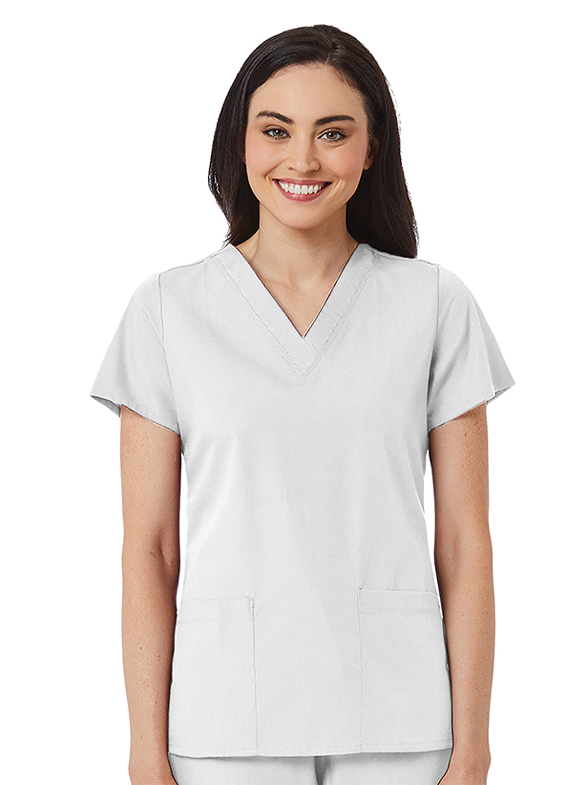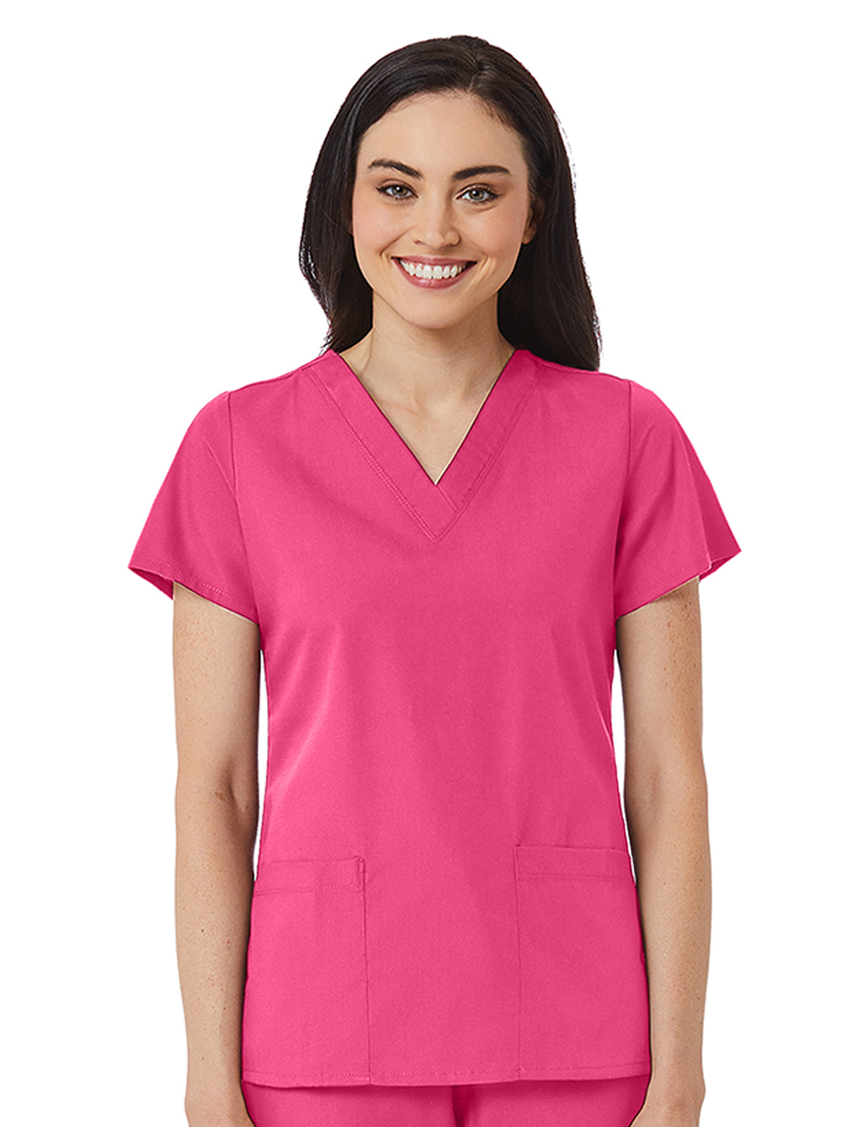 Maevn's Red Panda Brand features classic styling with a superior soft touch. The fabric is engineered to provide long-lasting durability, while maintaining an exceptionally soft, amazingly light feel. Each style is tailored to create a look that is both polished and professional. The V-Neck Two Pocket Top features two front patch pockets, double needle stitching at the shoulder and pocket, and an inner utility loop at pocket.